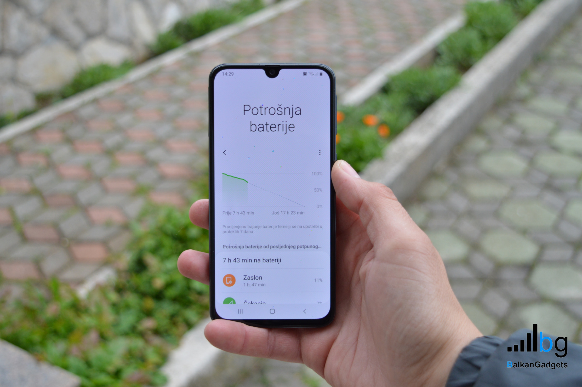 - Baterija ima kapacitet od 3100 mAh, a zahvaljujući štedljivom procesoru autonomija na Galaxy A40 je vrhunska. Mojim korištenjem (whatsapp, pozivi, email, YouTube, nekoliko poslovnih aplikacija, malo Netflixa itd.) izvlačio sam 5:30 h SoT-a (Screen On Timea) bez ikakvih problema. To znači da je nekim normalnim korištenjem moguće izdržati oko dan i pol bez punjača.